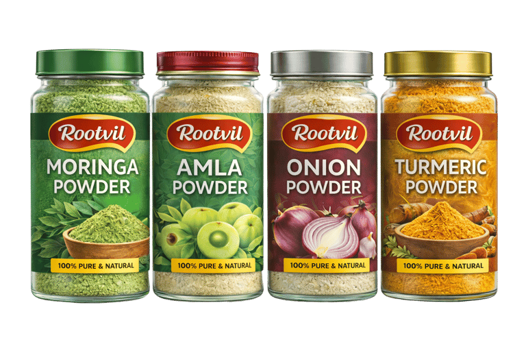 ROOTVIL Global Exim is an India-based export company committed to supplying high-quality natural powders and food ingredients to global markets.