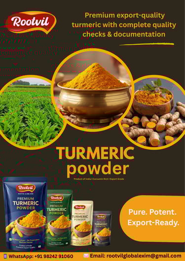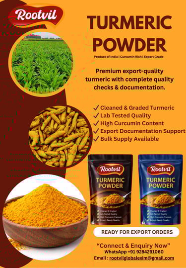 نقوم بتوريد مسحوق كركم بجودة مخصصة للتصدير للمستوردين بالجملة، وعلامات التوابل التجارية، ومصنّعي الأغذية، وشركات العلامة التجارية الخاصة. يتم تجهيز المنتج وفقًا لمتطلبات المشتري من حيث حجم النعومة (Mesh)، ونوع التعبئة، ومعايير وضع الملصقات لتلبية احتياجات الأسواق المختلفة.